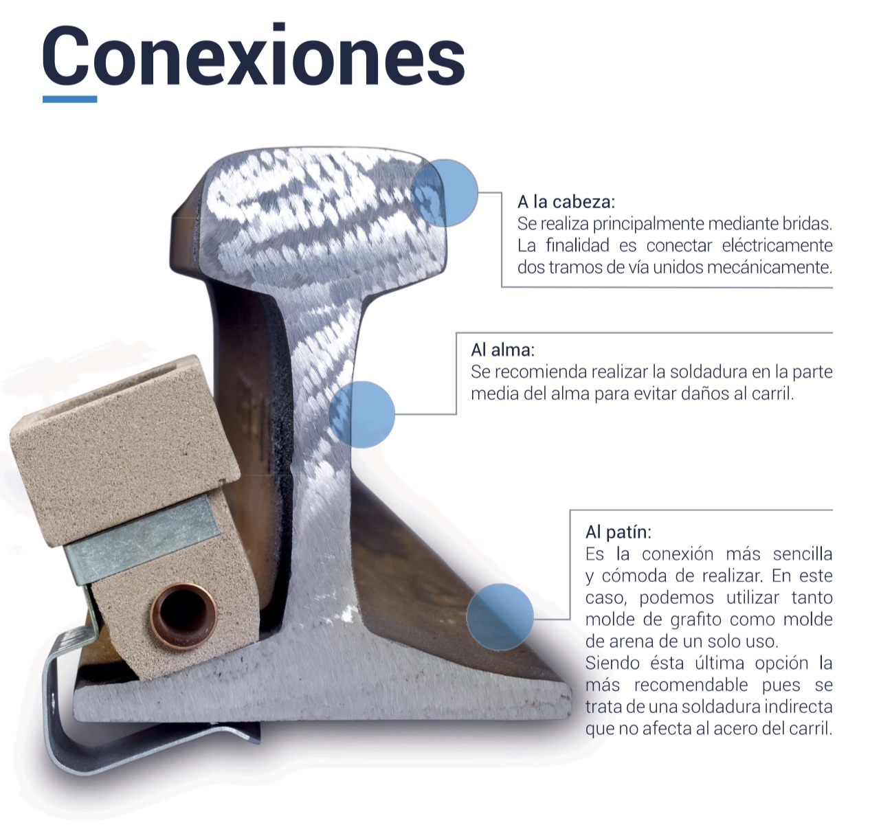 - Conexiones mixtas: Soluciones para juntas inductivas y carriles discontinuos.